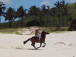 Die Osterinsel ist der einzige Insel, der dem Ostpazifischen Rücken aufsitzt. Das hat zur Folge, dass der für viele pazifische Inseln charakteristische Küstensaum fehlt. Die Kuste fällt unmittelbar steil ab, bis zu einer Meerestiefe von 3.000 Metern. Sandstrand ist nur an wenigen Stellen – in nennenswertem Umfang nur in Anakena – zu finden.