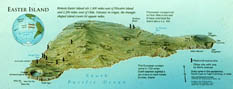 Die Osterinsel hat die Form eines rechtwinkligen Dreiecks mit einer Fläche von ca 160-180²km. Die Landschaft ist durch den vulkanischen Ursprung geprägt. Im Wesentlichen besteht sie aus drei erloschenen Vulkanen, dem Rano Kao im Südwesten, dem Poike auf der gleichnamigen Halbinsel im Osten und dem Maunga Terevaka im Norden, mit 508 Metern die höchste Erhebung.