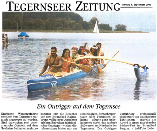 - „Tahitianisches Kanu Va’a”; Tegernsee, Oktober 2003.